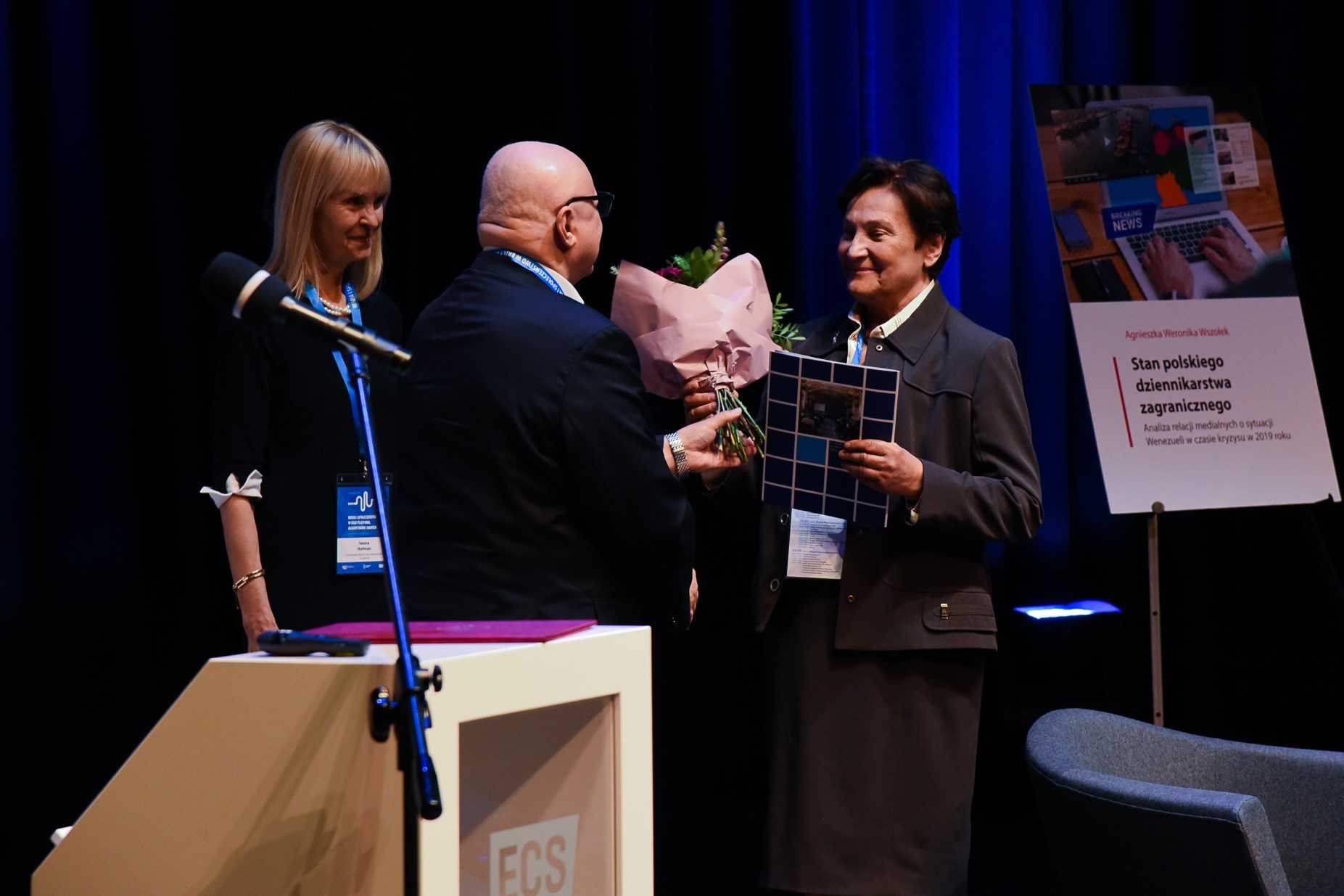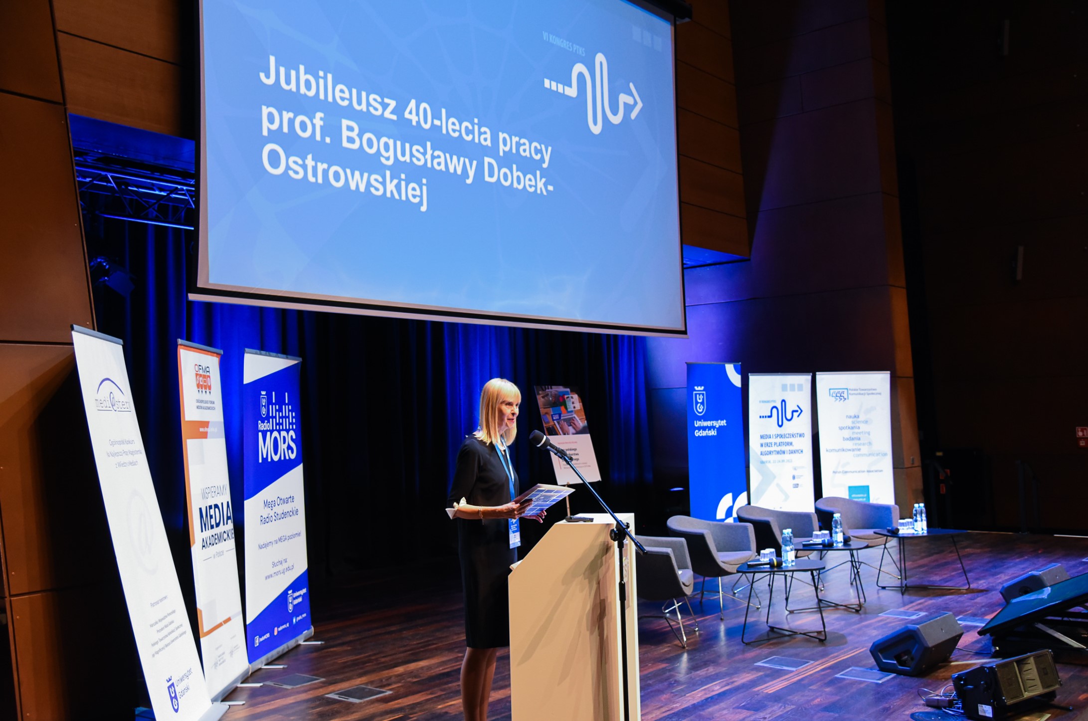 Kolejno uczestnicy uczcili jubileusz 40-lecia pracy prof. Bogusławy Dobek-Ostrowskiej – współzałożycielki i pierwszej prezes Polskiego Towarzystwa Komunikacji Społecznej. Gratulacje wygłosiła obecna Prezes PTKS, prof. Iwona Hofman. Profesor Michał Głowacki, redaktor naczelny czasopisma PTKS „Central European Journal of Communication”, poinformował o zadedykowaniu prof. Dobek-Ostrowskiej najnowszego, 30. numeru periodyku, obchodzącego 15-lecie działalności.