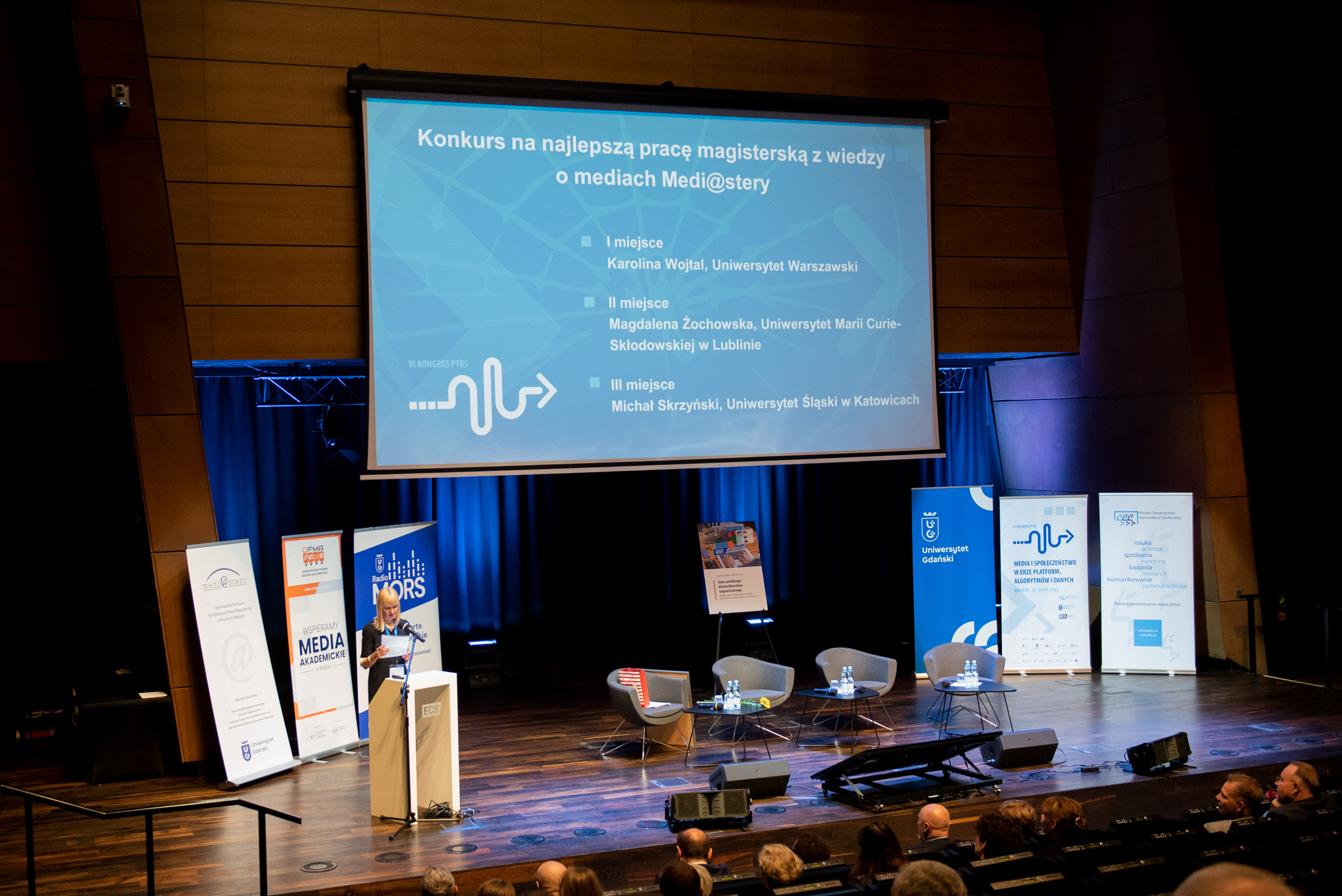 Ostatnim punktem programu uroczystego rozpoczęcia Kongresu było rozstrzygnięcie konkursu Medi@stery – ogólnopolskiego konkursu na najlepszą pracę magisterską z zakresu wiedzy o mediach, zainicjonowanego przez prof. Małgorzatę Łosiewicz oraz prof. Annę Ryłko-Kurpiewską i organizowanego przez Instytut Mediów, Dziennikarstwa i Komunikacji Społecznej na Uniwersytecie Gdańskim. Wyłoniono trzech laureatów. Na miejscu trzecim, za pracę „Komiks w ujęciu teorii użytkowania i korzyści. Badanie użytkowników komiksów” pod opieką dr. hab. Marka Mazura, który odebrał nagrodę, znalazł się absolwent Uniwersytetu Śląskiego, Michał Skrzyński. Drugie miejsce zajęła autorka pracy „#bookstagram: Książka i czytanie w mediach społecznościowych”, Magdalena Żochowska. W jej imieniu nagrodę odebrała promotor pracy prof. dr hab. Iwona Hofman. Tytuł najlepszej pracy magisterskiej przyznano pracy „Marketing LGBT+: Charakterystyka, potencjał wykorzystania, przykłady”, autorstwa Karoliny Wojtal pod opieką naukową dr hab. Anny Jupowicz-Ginalskiej, prof. Uniwersytetu Warszawskiego.