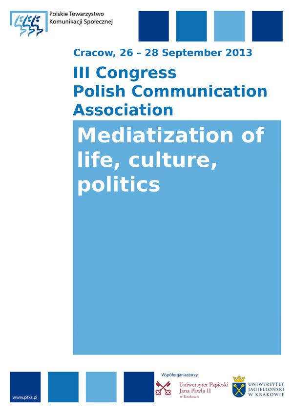 We are pleased to invite you cordially to Cracow, to take part in the III Congress of the Polish Communication Association. This time the main topic of the III Congress will be the phenomenon of mediatization – the broad, multidirectional influences and cross-references between the media and the forms and content of social life..