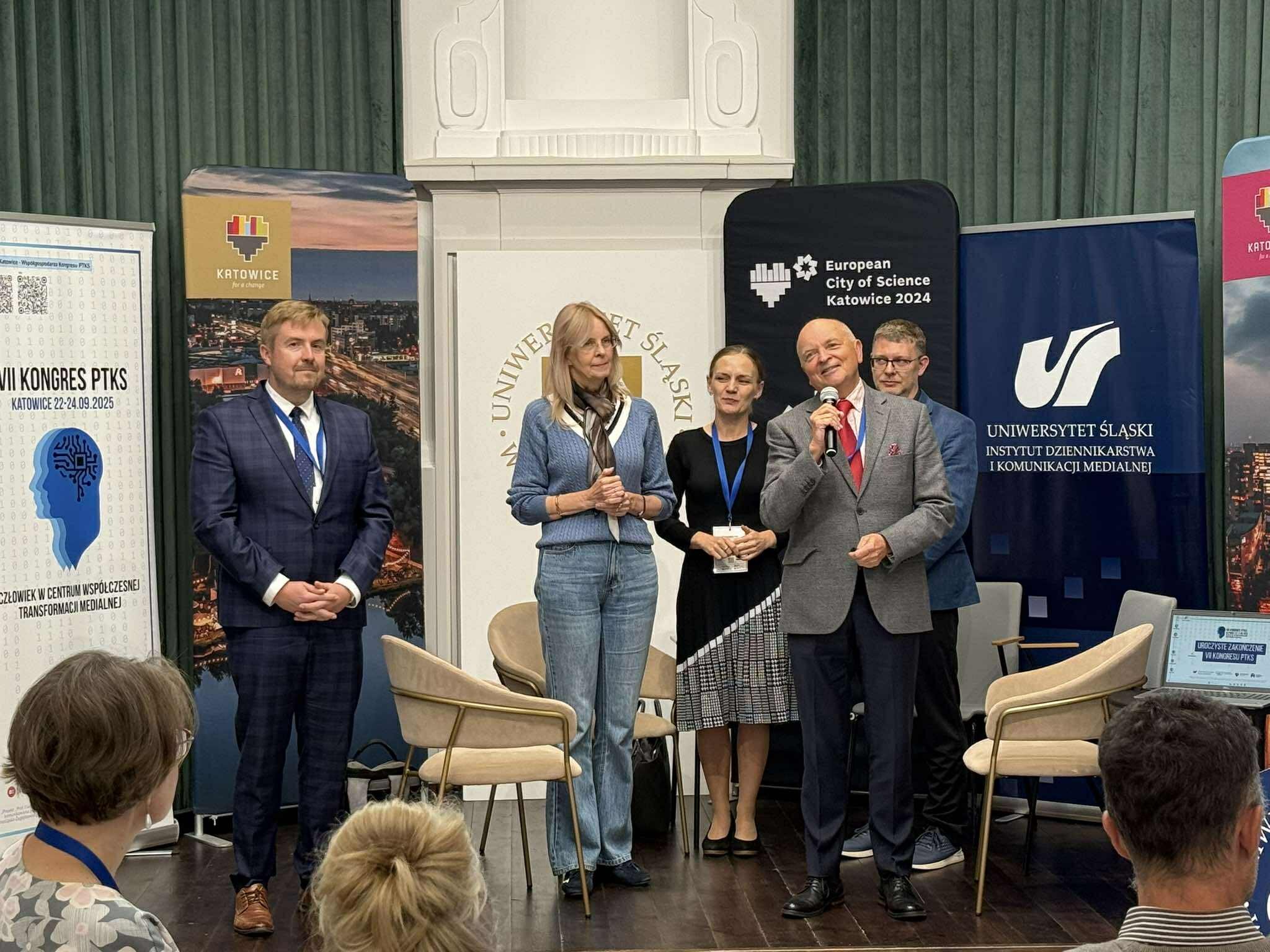 W dniach 22-24 września 2025 roku w Katowicach odbył się VII Kongres Polskiego Towarzystwa Komunikacji Społecznej pod hasłem „Człowiek w centrum współczesnej transformacji medialnej". Organizatorem konferencji było Polskie Towarzystwo Komunikacji Społecznej oraz Instytut Dziennikarstwa i Komunikacji Medialnej Uniwersytetu Śląskiego w Katowicach. To najważniejsze wydarzenie w działalności Towarzystwa odbywa się cyklicznie i służy przede wszystkim integracji polskich badaczy mediów, wywodzących się z różnych paradygmatów badawczych, ale i budowaniu nowej dyscypliny badawczej – nauki o komunikacji społecznej i mediach. Kongresy mają także na celu zjednoczenie środowiska badaczy i praktyków komunikowania. Do udziału w wydarzeniu w 2025 roku, zgłosiło się 369 prelegentów, którzy zabrali głos w 47 panelach tematycznych. Patronat honorowy nad wydarzeniem objęli prof. Ryszard Koziołek, JM Rektor Uniwersytetu Śląskiego oraz Marcin Krupa Prezydent Miasta Katowice. W Kongresie wzięli udział goście specjalni, światowej sławy badacze i eksperci w dziedzinie polityki cyfrowej: prof. Rachel Gibson z University of Manchester oraz prof. Claes De Vreese z University of Amsterdam.